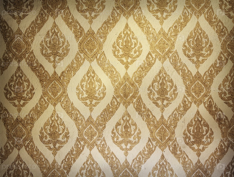 Фрагмент стены с изображением будды в старом буддистском восточном храме, Бангкок, Таиланд