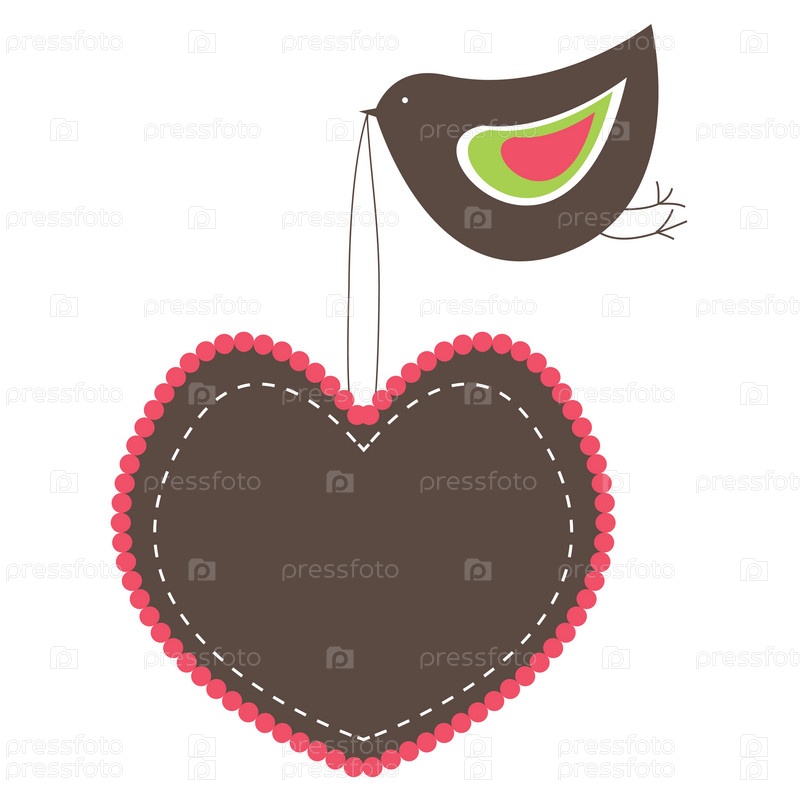 Абстрактное изображение сердца и птицы на белом фоне