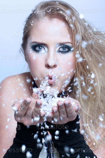 Девушка-зима. Портрет девушки, которая раздувает снег