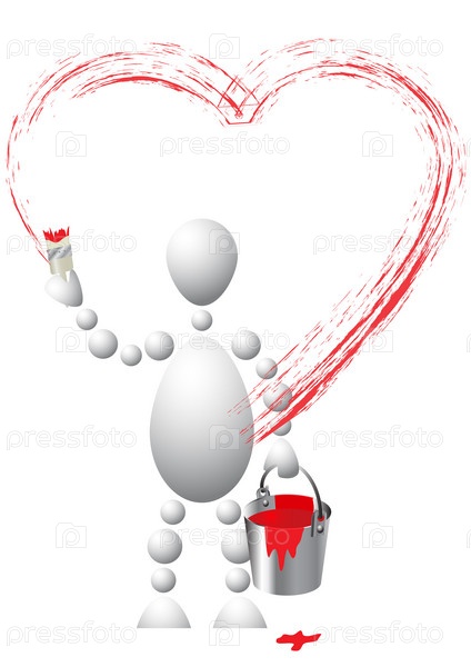 Человечек с ведром краски рисует сердце
