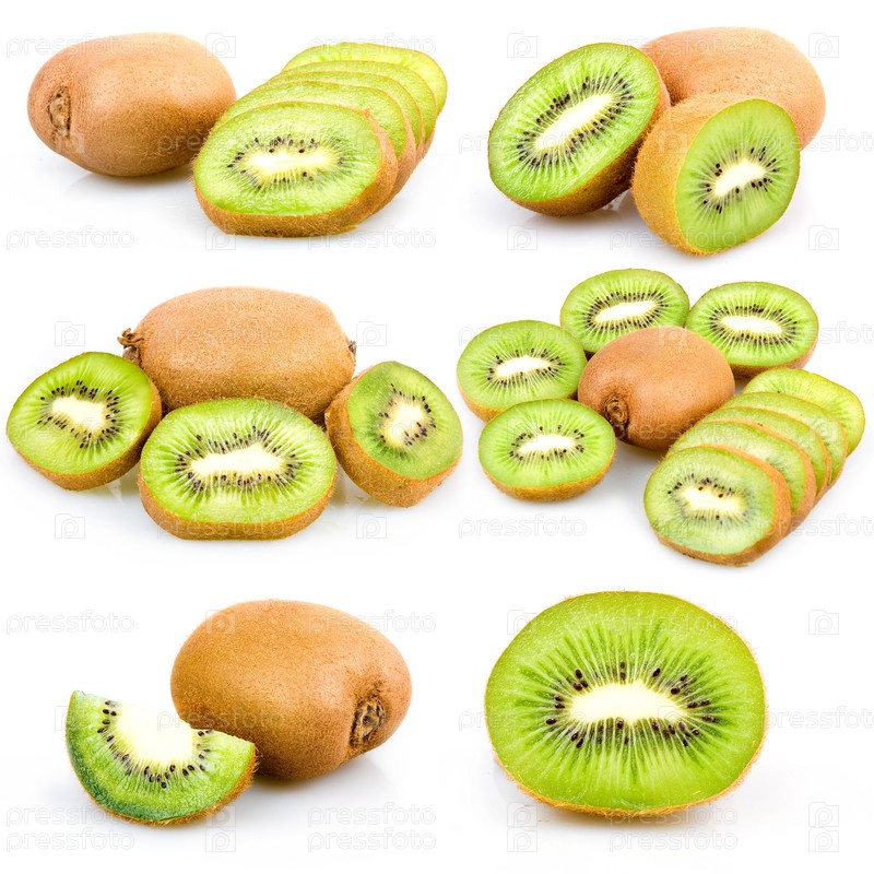 Набор свежих фруктов киви на белом фоне