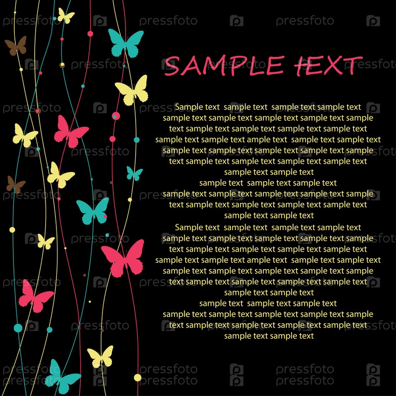 Разноцветные бабочки на черном фоне