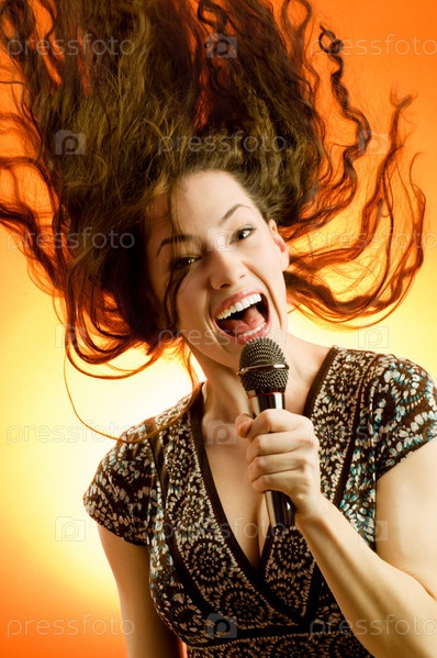 Красивая девушка поет на вечеринке