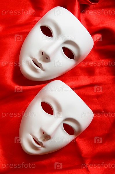 Две театральные маски на алом атласе