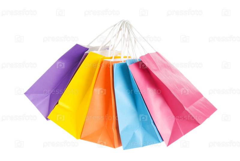 Разноцветные бумажные сумки на белом фоне