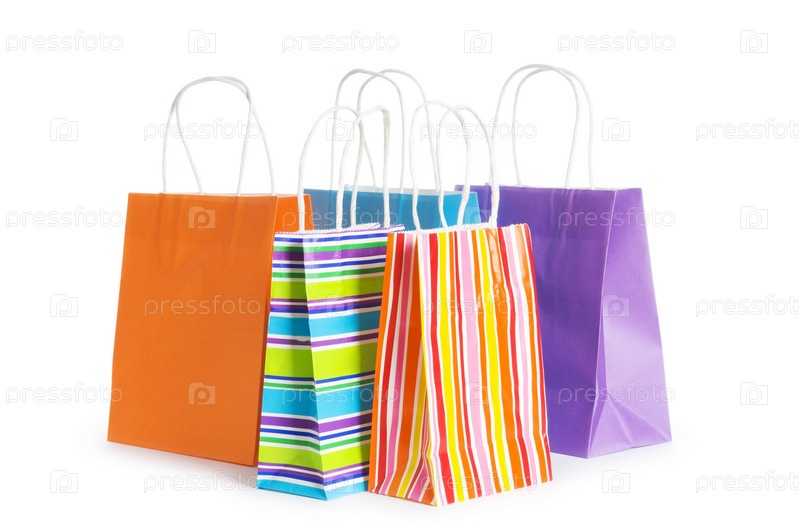 Разноцветные бумажные сумки на белом фоне