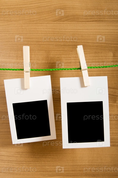 Пустые рамки для фотографий, висящие на прищепках