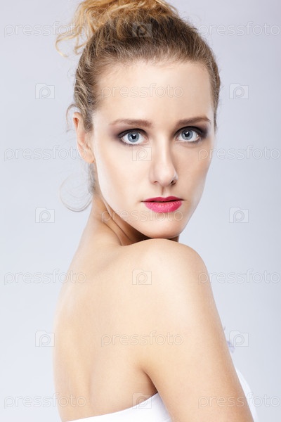 Портрет блондинки на сером фоне