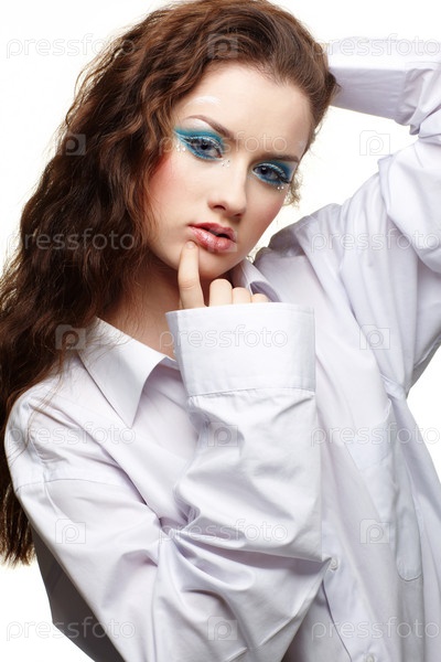 Портрет молодой красивой женщины с ярким макияжем