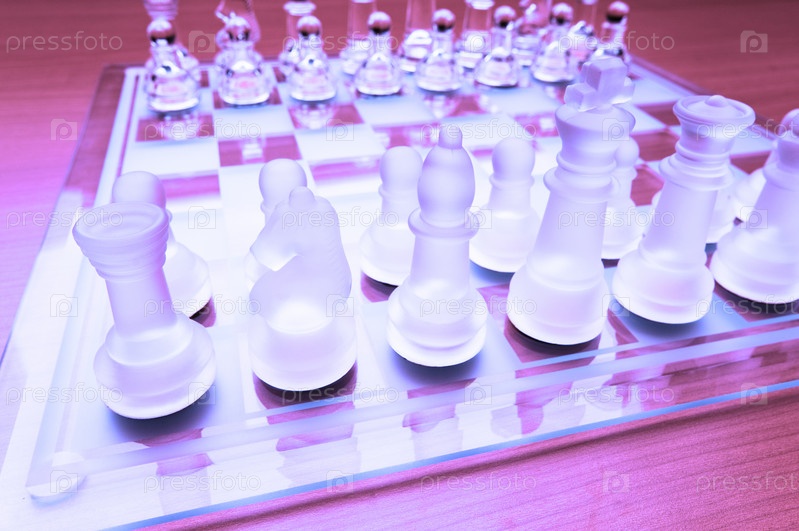 Набор стеклянных шахматных фигур на доске