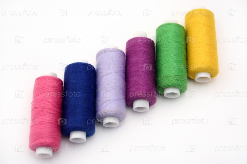 Разноцветные катушки ниток на белом фоне