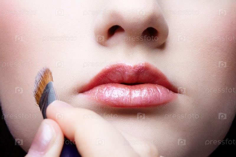 Женское лицо с кисточкой для макияжа