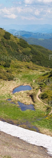 Летний горный пейзаж. Водоем, по форме напоминающий человеческую ступню