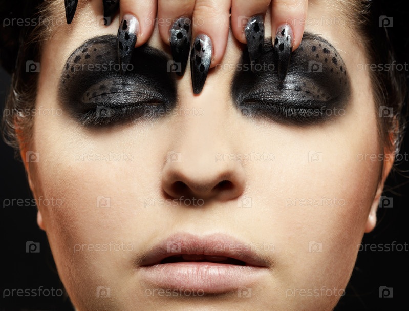 Портрет ярко накрашенной женщины с острыми ногтями