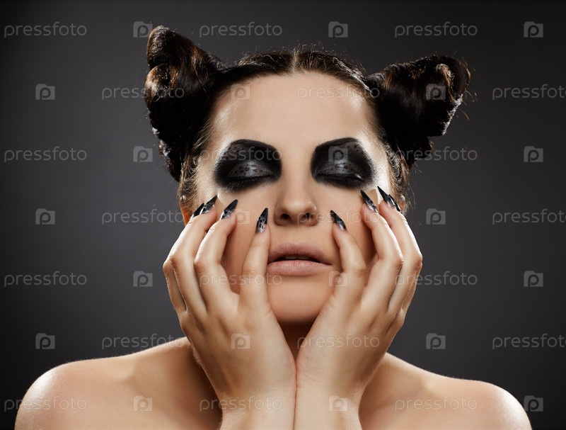 Женщина-кошка на черном фоне
