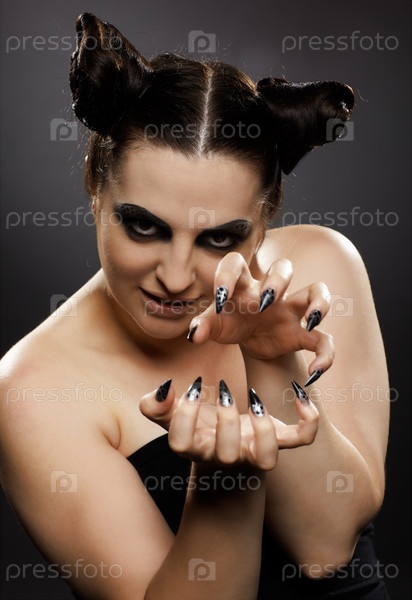 Женщина-кошка на черном фоне