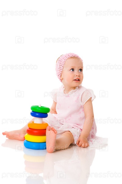 Девочка с пирамидкой на белом фоне