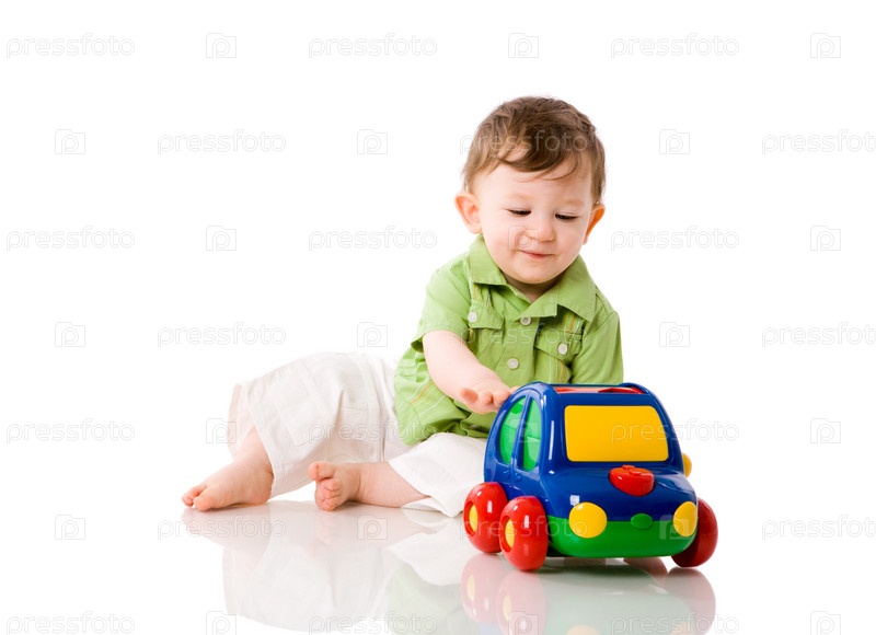 Годовалый мальчик играет с машинкой