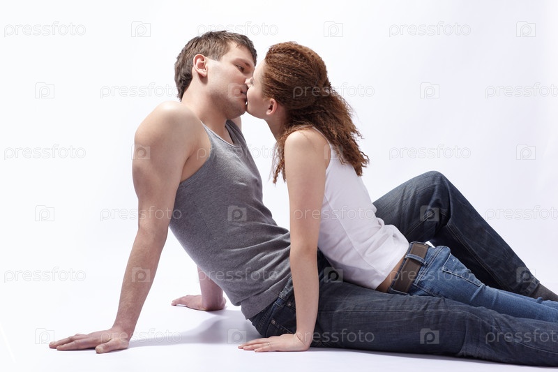 Портрет молодой пары, сидящей на полу