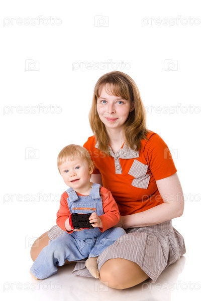 Мать с сыном сидят на полу