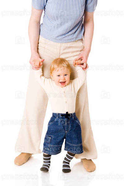 Мать учит сына ходить