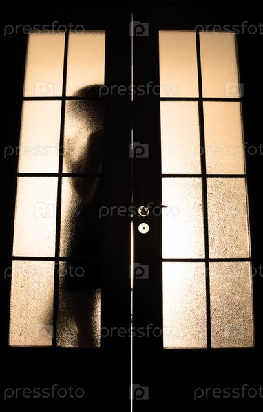 Силуэт девушки за стеклянной дверью