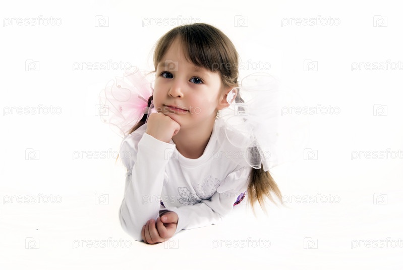 Портрет маленькой красивой девочки на белом фоне