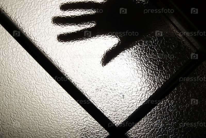 Рука за стеклянной дверью