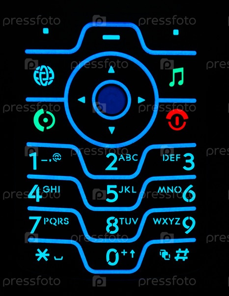 Клавиатура мобильного телефона в темноте, крупный план