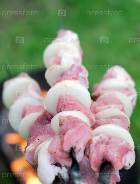 Сырой шашлык на шампуре