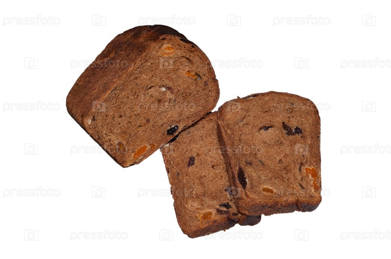Ржаной хлеб с изюмом и курагой на белом фоне