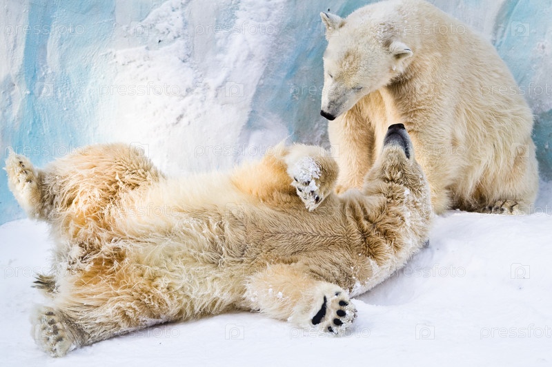 Пара молодых белых медведей, заботящихся друг о друге
