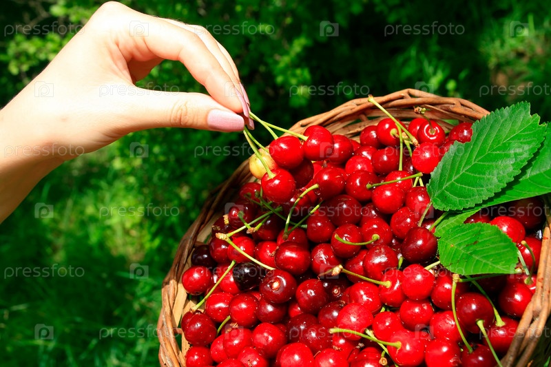 Корзина со спелой вишней