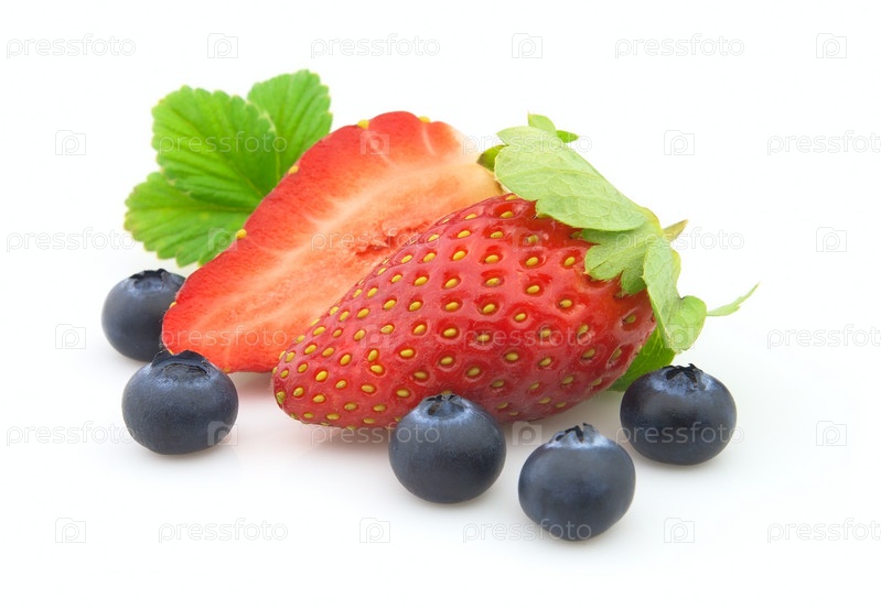Свежие ягоды с листьями на белом фоне