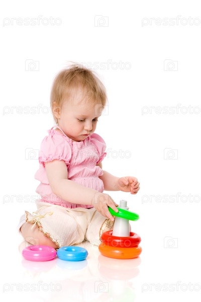 Девочка с пирамидкой на белом фоне