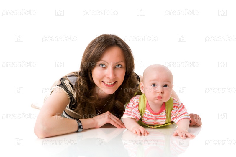 Мать с ребенком на белом фоне