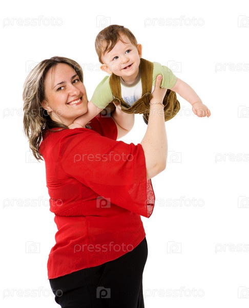 Мать с сыном на белом фоне