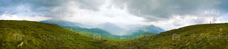 Панорамный вид горных вершин с облаками
