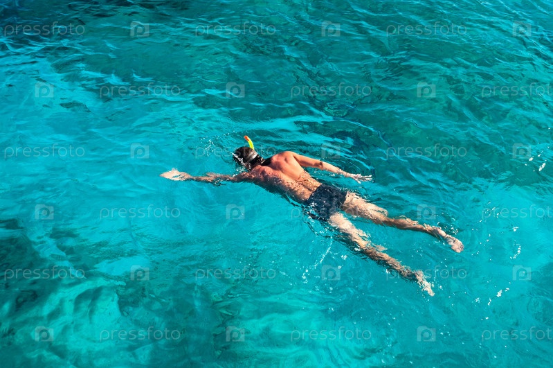 Мужчина плавает в море