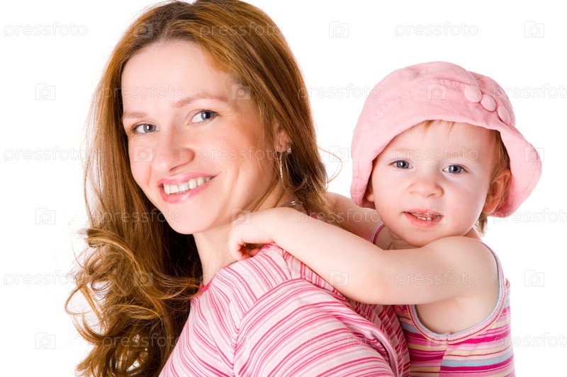 Портрет матери и дочки на белом фоне