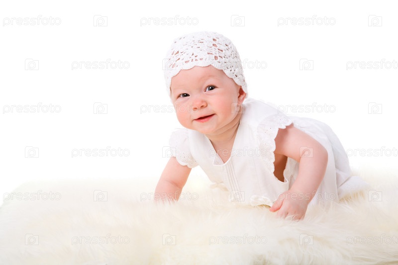 Портрет маленькой девочки, ползающей по пушистому ковру