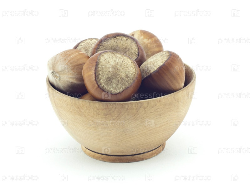 Фундук в чашечке на белом фоне