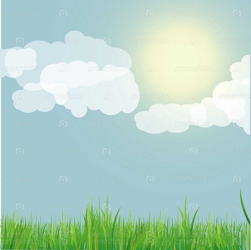 Изображение травы, солнца и облаков