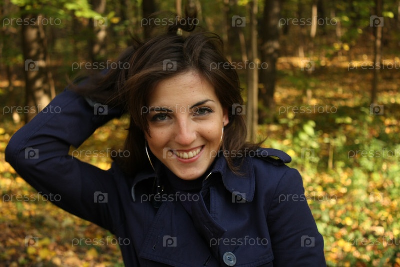 Женщина в осеннем лесу в пальто