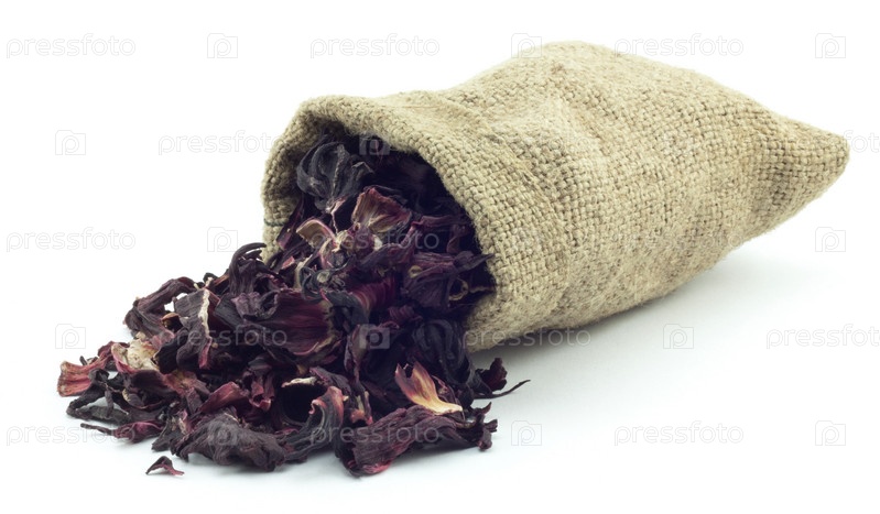 Сухой чай в мешочке на белом фоне