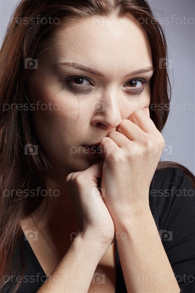 Портрет красивой девушки с размытой тушью от слез