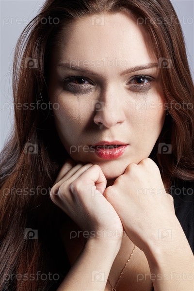 Портрет красивой девушки с размытой тушью от слез