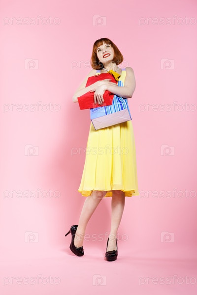 Довольная женщина с покупками