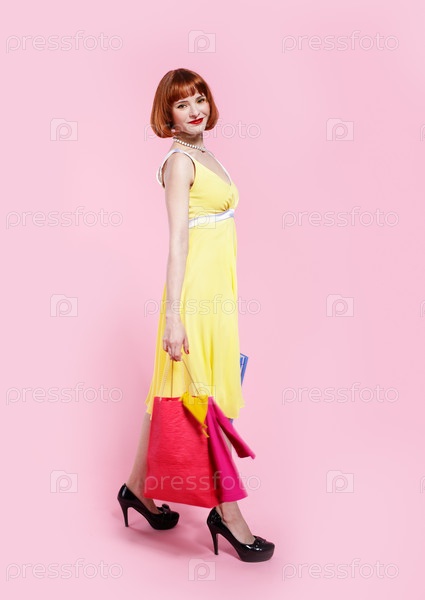 Довольная женщина с покупками