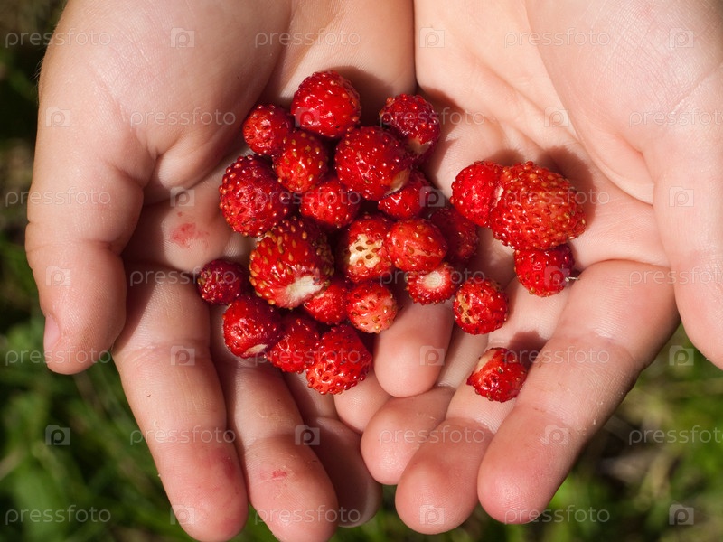 Еда из ягод - человеческая рука, держащая красную клубнику